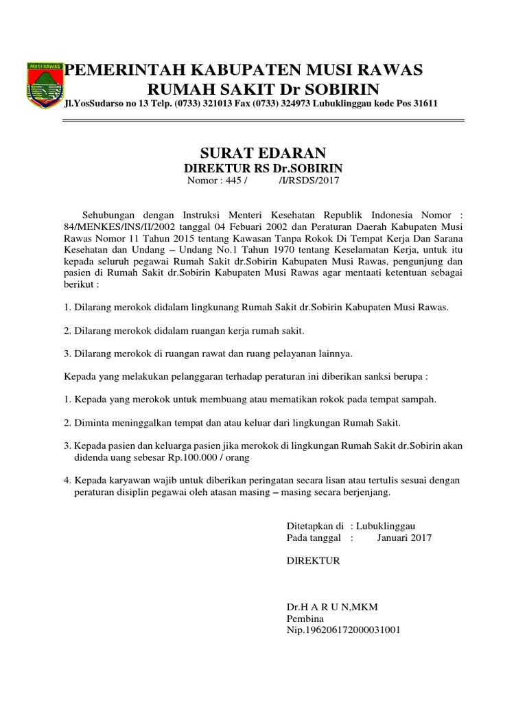 Surat Edaran Larangan Merokok Pdf
