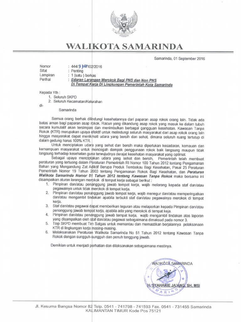 Surat Edaran Larangan Merokok Di Tempat Kerja Pdf